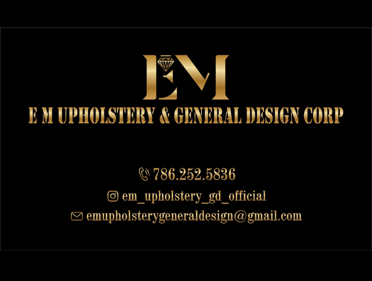 Información Adicional Somos E M UPHOLSTERY & GENERAL DESIGN CORP. ¡Estamos aquí para ayudarte a transformar tu yate en un espacio de lujo!. SIEMPRE DISPUESTOS A QUE EL CLIENTE ESTE COMPLACIDO. CONCERTAMOS CITAS EN SUS BARCOS PARA CHEQUEAR LO QUE USTED NECESITA HACER Y ASI NOSOTROS SABER LO QUE USTED DESEA